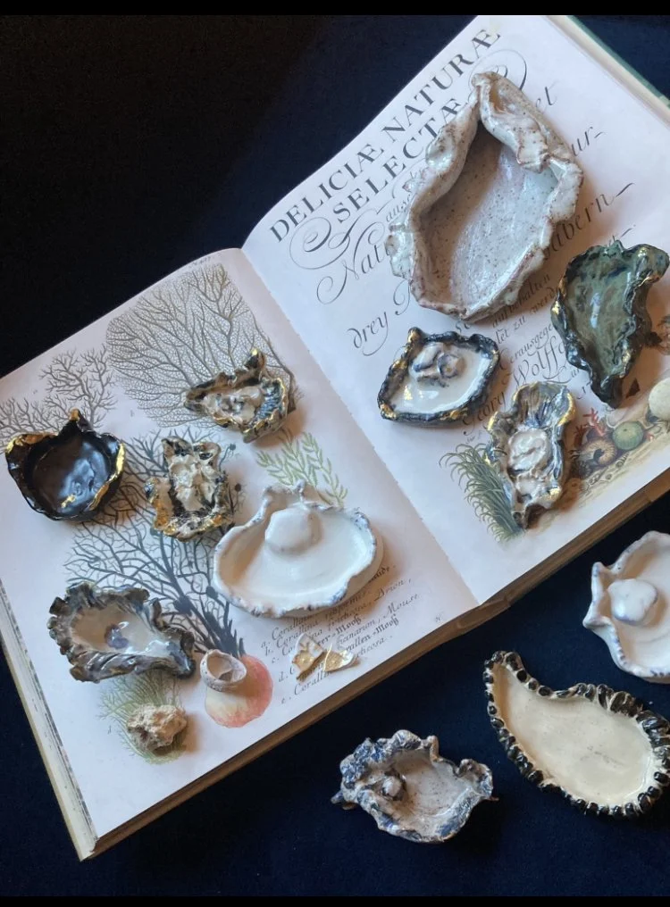 “Aphrodite’s Shells”- ceramic and gold leaf, various sizes, 2023